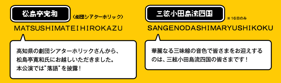 ヨコクラうどん、松柏園、テアトル・ローマン、劇団シアターホリック、三絃小田島流四国